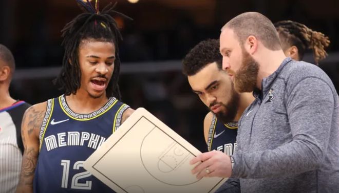 不過,就目前而言,最相關(guān)的是他對球隊籃球運營的干擾。上賽季,灰熊隊在主教練泰勒-詹金斯和助理教練諾亞-拉羅什的指導(dǎo)下引入了一種新進攻體系。這個體系基本上取消了擋拆和手遞手傳球。相反,灰熊隊的突破次數(shù)在NBA中遙遙領(lǐng)先,場均超過59次,而排名第二的雷霆隊最高只有54.5次。這些突破依賴于簡單的球員移動原則和相對平均的球權(quán)分配。從球隊的角度來看,這個體系大體上是有效的。
