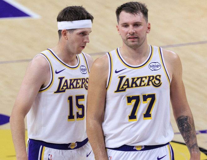 東契奇的強大早已深入人心,新賽季,東契奇出戰(zhàn)7場,場均出戰(zhàn)37分鐘,場均砍下37.1分+9.4籃板+9.1助攻+1.7搶斷+3.9記三分球!進攻沒有上限,防守態(tài)度拉滿,身體輕盈如飛,攤手次數(shù)驟降,這個版本的東契奇比獨行俠時期更可怕,氣得獨行俠老板果斷解雇哈里森,并公開認錯:我拍板交易東契奇是宇宙級的錯誤。一個東契奇能頂半邊天,已經(jīng)夠任何對手喝一壺的,可怕之處湖人陣中還有一個里夫斯,堪比迷你版的東契奇。